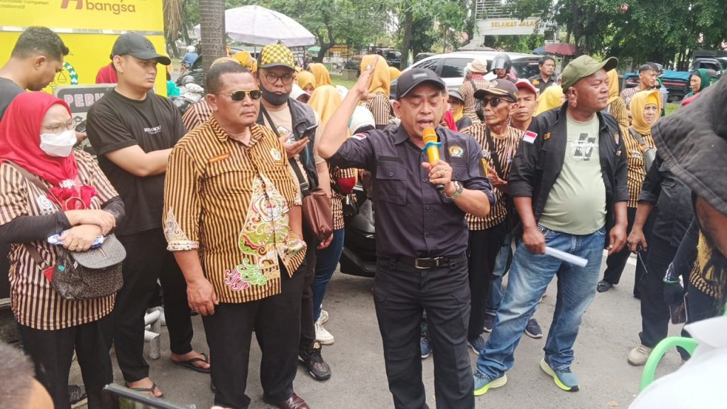 MEDAN, beritanusantara.my.id – Ratusan massa dari Putra Jawa Kelahiran Sumatera (Pujakesuma) menyampaikan tuntutan saat unjuk rasa di Pengadilan Negeri Medan, Senin 20/4/2026 pukul 10.00 WIB.
